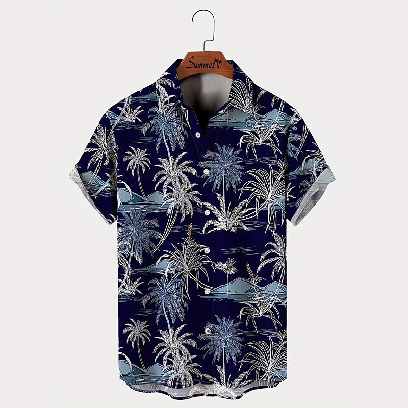 Men's Coconut Tree Tropical Plants Casual Shirt Summer Hawaiian Shirt Button Up Shirt Short Sleeve Hawaiian Resort Vacation Holiday Beach Wear Summer Spring Turndown 3D Print Collared Shirts Dark Blue