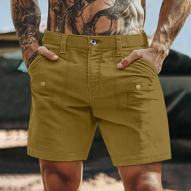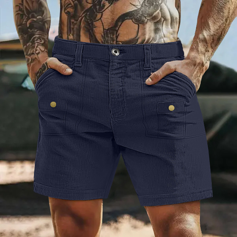 Men's Cargo Shorts Casual Shorts Corduroy Shorts Buttons Multi Pocket Straight Leg Plain Breathable Moisture Wicking Knee Length Outdoor Casual Camping Hiking Fashion Streetwear Navy Blue Green