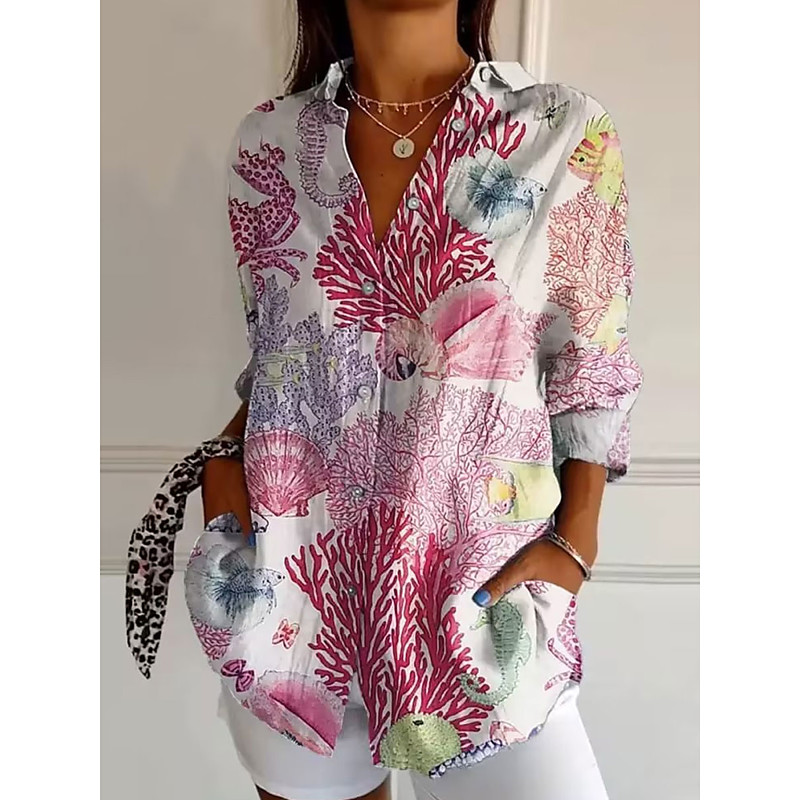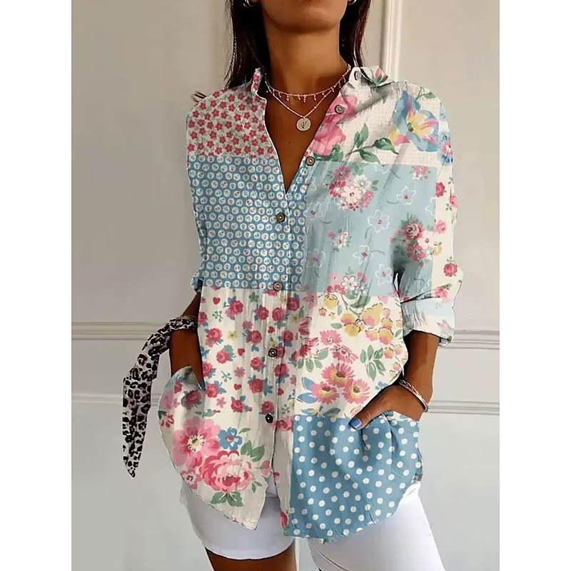 Women's Shirt Button Down Tunic Shirt Collar Long Sleeve Floral Casual Regular Tops Work Daily s Print White Yellow Pink Red Blue Spring Fall Winter