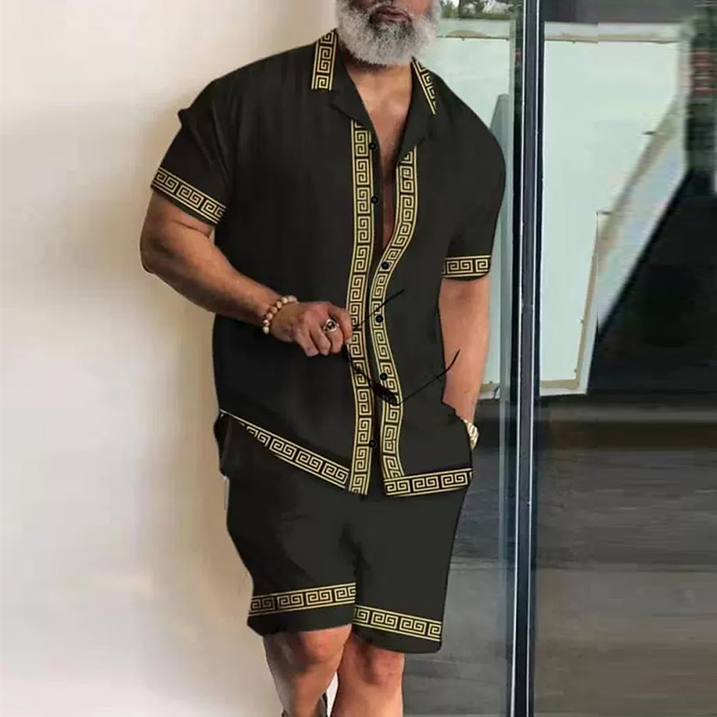 Men's Printing 2pcs Shirts Sets Summer Tops Short Sleeve Short Pants Cuban Collar Vacation Ethnic Party Casual Daily 3D Print Summer Black