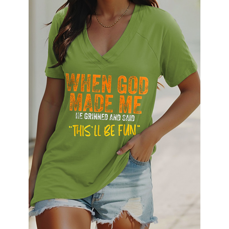 Women's T Shirt Graphic Letter Casual Short Sleeve V Neck Regular Tops Daily Print Black Blue Green Summer