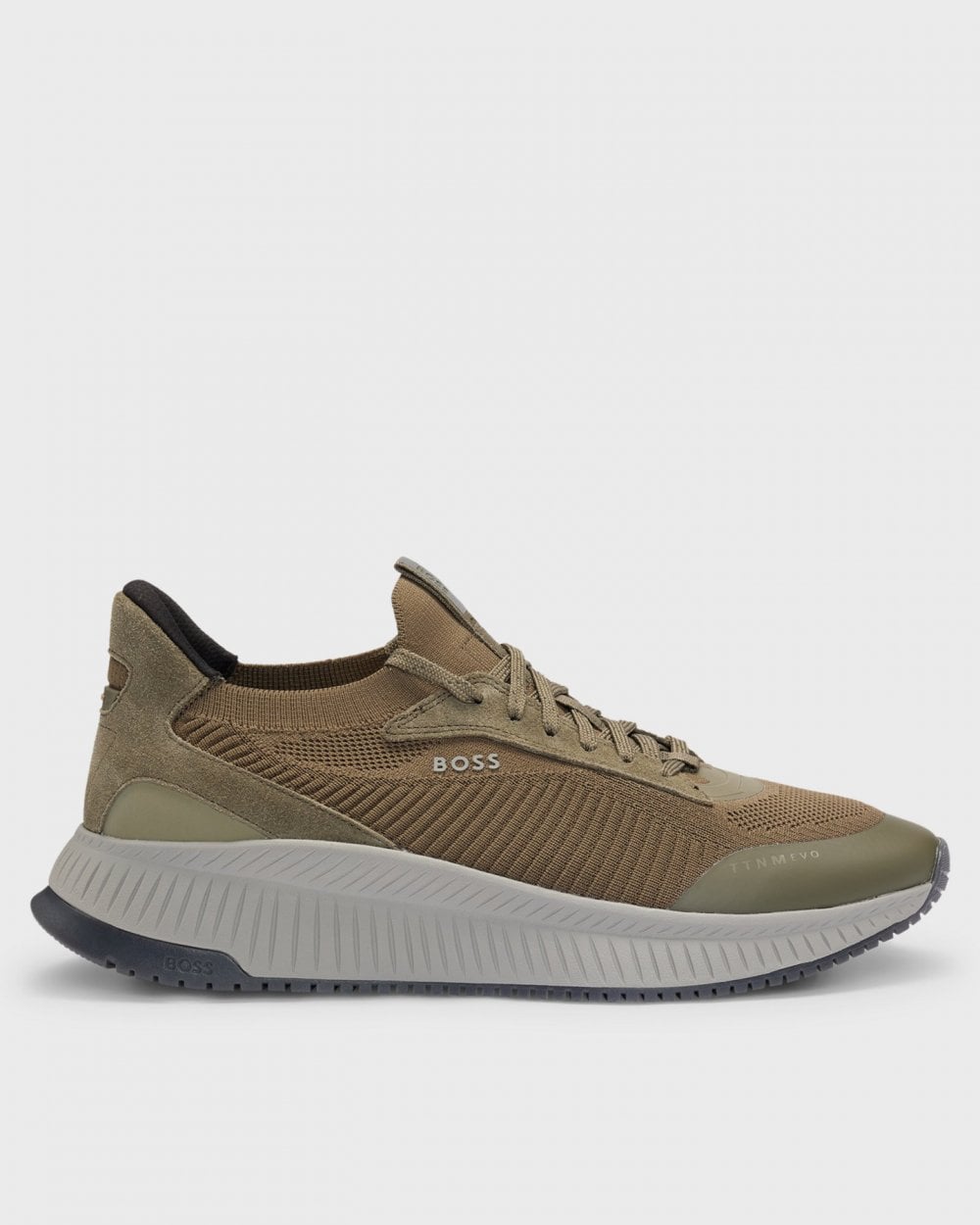 Boss Orange Ttnm Evo Mens Trainers With Knitted Uppers - Khaki - Size UK 9 | Boss Orange Sale | Discount Designer Brands