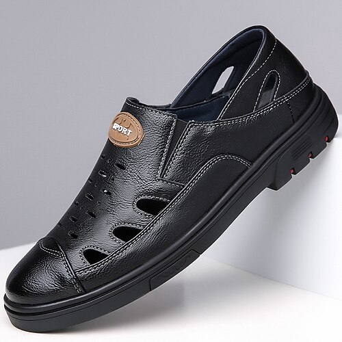 sandali da uomo in pelle marrone con design traspirante e traforato - calzature comode per l'estate, la spiaggia e le attività all'aperto