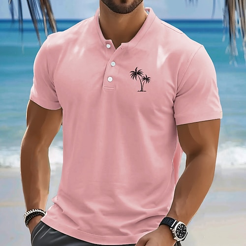 Per uomo Palma Maglietta Maglia Henley Manica Corta Designer Retrò Vintage Casual Streetwear Casuale Quotidiano Estate Primavera Rosa chiaro Verde chiaro Blu chiaro Henley Maglietta Henley