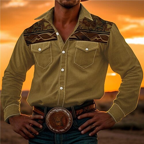 Per uomo Tribale Stampa bandana Camicia Camicia Western Manica Lunga Camicia Collo ripiegato Vintage All'aperto Streetwear Casual Quotidiano Rosa Rosso Blu S M L