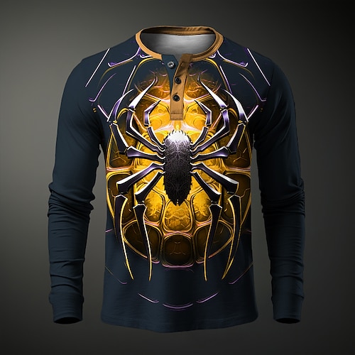 Per uomo Pop art Ragni Camicia Henley Manica lunga Stampa 3D Di tendenza Giornaliero Informale Informale Per eventi Per uscire Primavera Autunno Giallo Rosso Blu Viola Henley Maglietta Henley