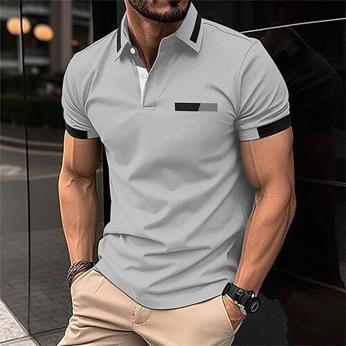 Per uomo Maglia da golf Polo da Golf Lavoro Casuale Bavero Manica Corta Essenziale Moderno Blocco di colori Patchwork Bottoni Primavera Vestibilità regolare Nero Blu azzurro cielo Marrone Verde