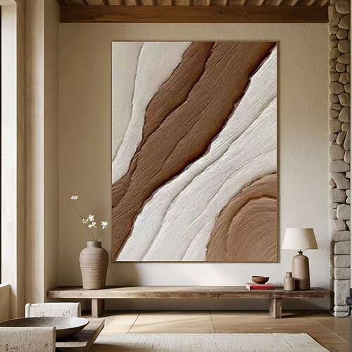 dipinto a olio marrone e bianco, set di 2 dipinti astratti su tela, dipinto a mano, texture moderna, pittura murale, pittura astratta moderna, decorazione murale