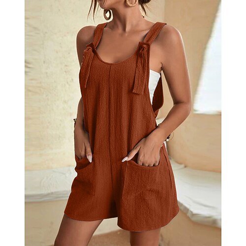 Per donna Normale Tuta Streetwear Tinta a nodi Senza Maniche Scollo a V Tasca Streetwear Quotidiano Vestibilità regolare Giallo Rosa Rosso Estate