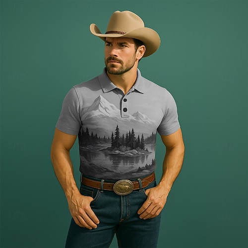 Per uomo Albero Montagna Polo Manica Corta Magliette polo Camicie con Colletto Casual Stile Western All'aperto Athleisure Abbigliamento quotidiano Stampa 3D Estate Nero Blu Viola