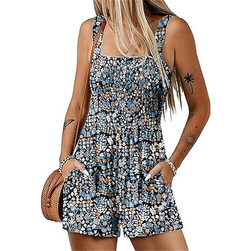 Per donna Normale Pagliaccetto Casual Floreale Senza Maniche Pantaloncini larghi Stampato Streetwear Quotidiano Vestibilità regolare Nero Verde chiaro Rosa Estate