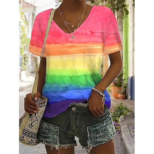 Per donna Maglietta Top estivi Grafico Gradiente di Colore Classico Casual Manica Corta Scollo a V Top corti Quotidiano Weekend Stampato Arcobaleno Estate Primavera Autunno
