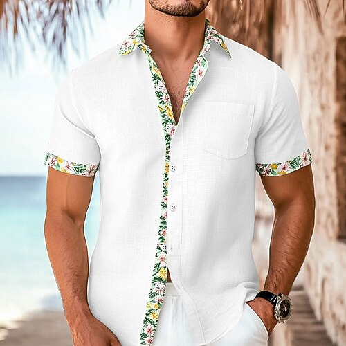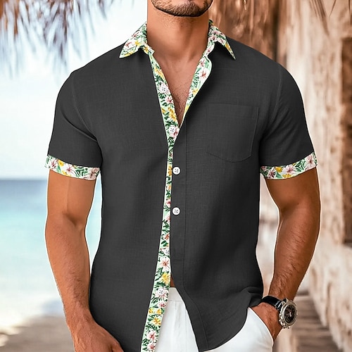 Per uomo Camicia Camicia di lino Camicia Estiva Abbigliamento da spiaggia Camicia con Bottoni Tinta unica Vacanza Crociera Nero Bianco Verde chiaro Azzurro Manica Corta Colletto Estate Primavera