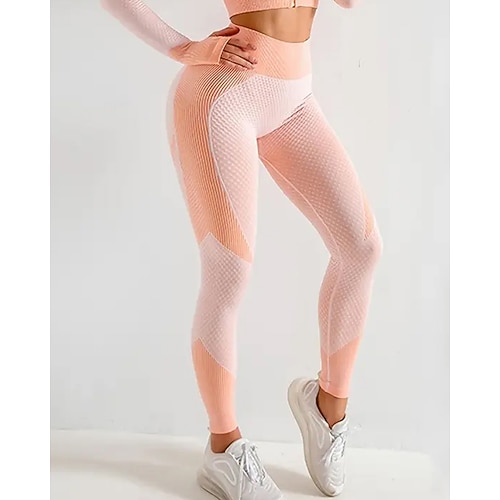 Per donna Pantaloni da yoga Leggings da yoga Patchwork Sollevamento glutei Controllo addominale Vita Alta Pilates Allenamento in Palestra Allenamento Collant A righe Rosa Spandex Autunno Gli sport