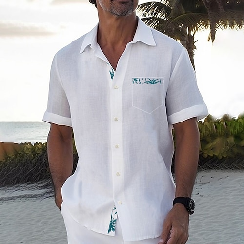 Per uomo Albero di Cocco Camicia di lino Camicia Estiva Camicia con Bottoni Manica Corta Moda Casual Vacanza Ferie Abbigliamento mare Estate Primavera Collo ripiegato camicie con colletto Una tasca