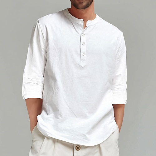 Per uomo Camicia Camicia di lino Camicia Estiva Camicia da Spiaggia Tinta unica Vacanza Casuale Nero Bianco Rosa Blu Manica Lunga Henley Abbigliamento Puro