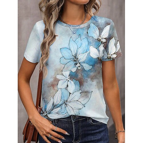 Per donna Maglietta Floreale Grafico Vintage Classico Casual Manica Corta Girocollo Top Regolari Quotidiano Weekend Stampato Giallo Blu Viola Verde Grigio Estate