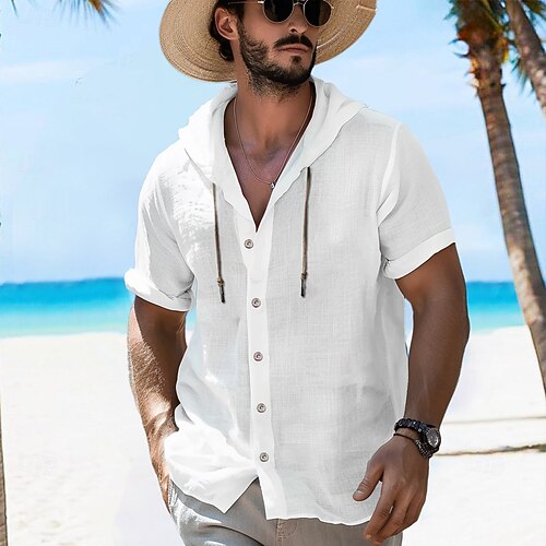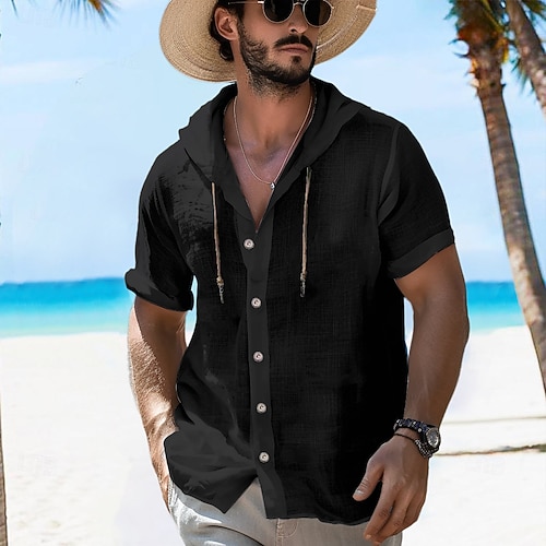 Per uomo Camicia Camicia estiva Camicia da spiaggia Camicia con cappuccio Liscio Da mare Curise Nero Bianco Verde Azzurro Manica corta Con cappuccio Estate Primavera Abbigliamento