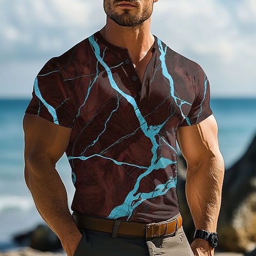 Per uomo Marmo Maglietta Maglia Henley Manica Corta Designer Retrò Vintage Casual Streetwear Casuale Quotidiano Estate Primavera Marrone Scuro Grigio Borgogna Blu marino Henley Maglietta Henley