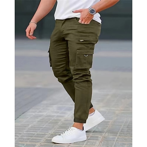 Per uomo Pantaloni Cargo Pantaloni Bottoni Tasca con Patta Semplice Indossabile All'aperto Quotidiano Campeggio Escursionismo Moda Classico Nero Verde militare