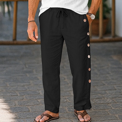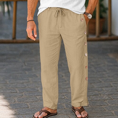 Per uomo Pantaloni di Lino Pantaloni Pantaloni Estivi Pantaloni Larghi Coulisse Elastico in vita Bottone laterale Semplice Traspirante Lunghezza intera All'aperto Vacanza Casuale Vacanza Stile Etnico