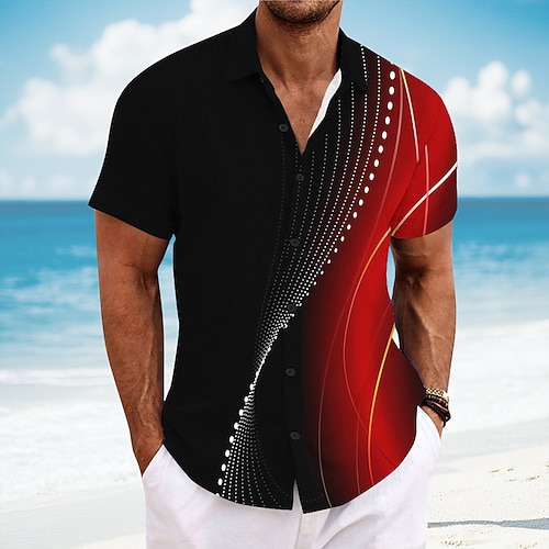 Per uomo Geometrico Colore sfumato Arte astratta Camicia Camicia Estiva Camicia con Bottoni Manica Corta Moda Casual All'aperto Vacanza Abbigliamento Quotidiano Estate Collo ripiegato Stampa 3D