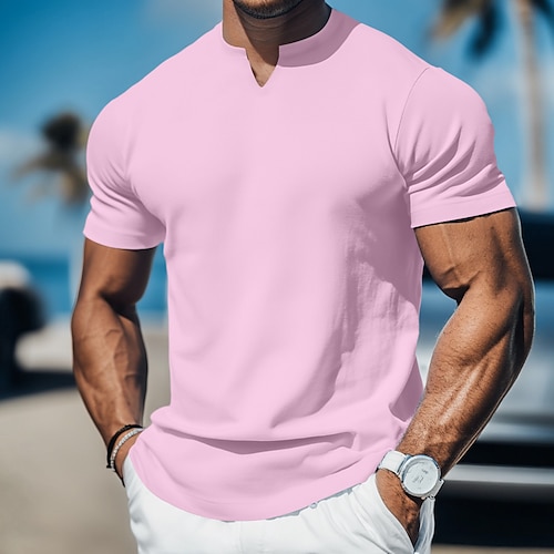 Per uomo Maglietta Manica Corta Scollo a V Estate Semplice Moda Classico Confortevole Scollo a V Casuale Sportivo Ferie Blu chiaro Marrone Scuro Nero Maglietta Top per Uomo