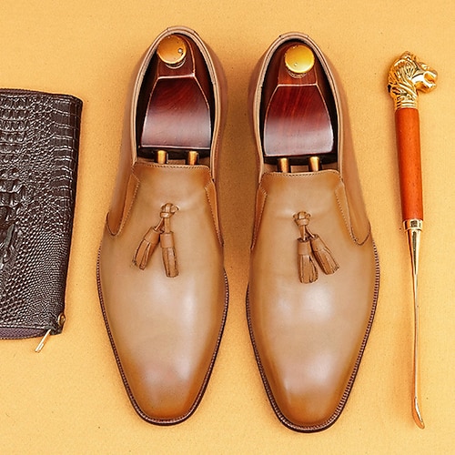 mocassini da uomo in pelle marrone con dettaglio nappa: calzature eleganti e comode per matrimoni, riunioni d'ufficio ed eventi serali