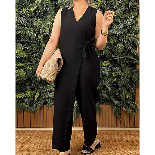 Per donna Normale Pantaloni in lino e cotone Streetwear Tinta unica Senza Maniche Scollo a V Quotidiano Uscire Vestibilità regolare Nero Bianco Giallo Estate