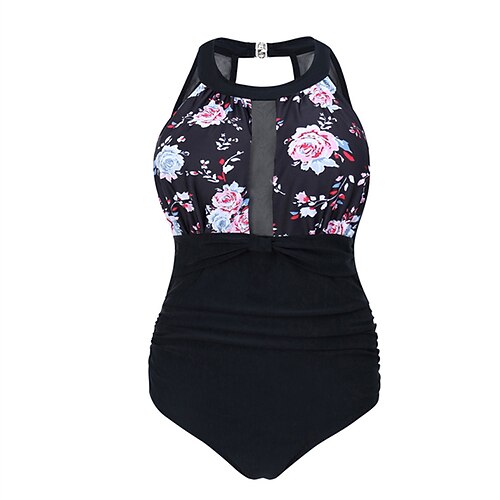 Per donna Costume Intero Rete Costume da Bagno Floreale Costumi da bagno Rosa chiaro Rosa Traspirante Asciugatura Rapida Senza Maniche - Nuoto Surf Snorkeling Estate