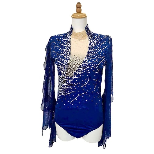 Costumi da pattinaggio artistico per ragazzi e uomini, alta elasticità, allenamento, competizione, abbigliamento da pattinaggio, classico, cristallo/strass, manica lunga, pattinaggio artistico sul