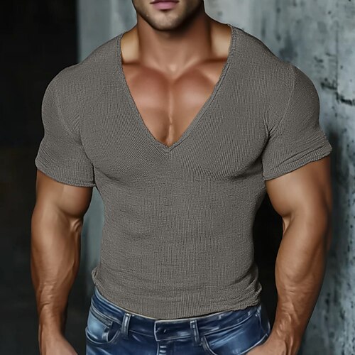 Per uomo Maglietta a Maglia Maglietta Maglietta in misto cotone Manica Corta Scollo a V Estate Tinta unica Moda Designer Essenziale Lavorato a maglia Vacanza Streetwear Casuale Giallo Beige Azzurro