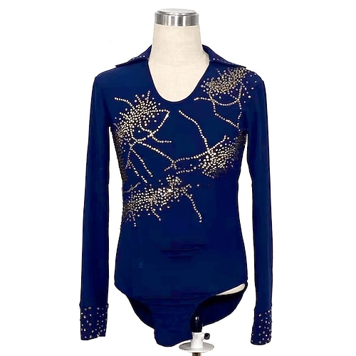 Costumi da pattinaggio artistico per ragazzi e uomini, ad alta elasticità, per allenamento e competizione, classici, con cristalli/strass, a maniche lunghe, per pattinaggio artistico sul ghiaccio,