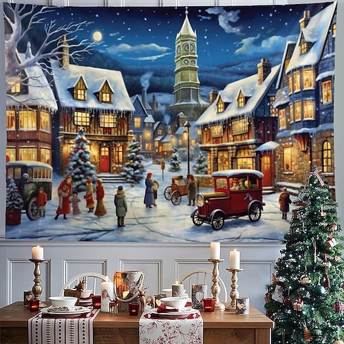 decorazioni natalizie esposizione invernale arazzo appeso arte murale natale grande arazzo decorazione murale fondale fotografico coperta tenda casa camera da letto soggiorno decorazione