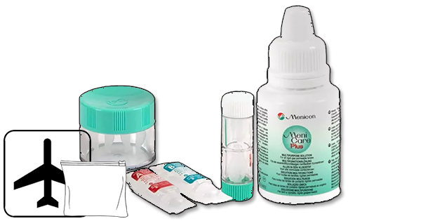 Menicare PLUS + Progent [flight-pack] 2x 50ml + 4x 5ml + 1x zipbag - lenzenvloeistof