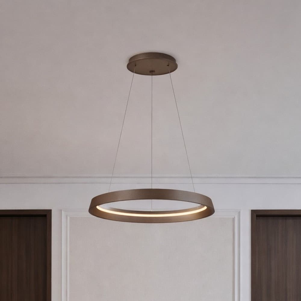 Nova Luce Ormi - hanglamp - Ø 60 x 150 cm - 52W dimbare LED incl. - geborsteld koffiebruin