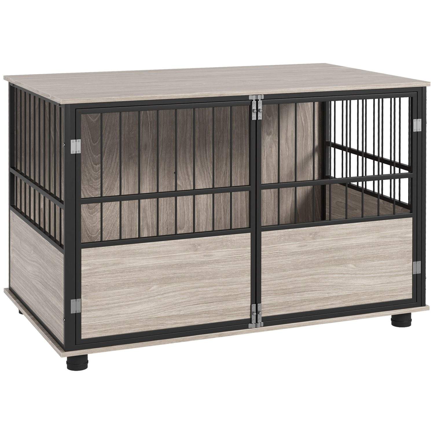 Grå hundehytte i gran, 75x88x82 cm, med asfalttak