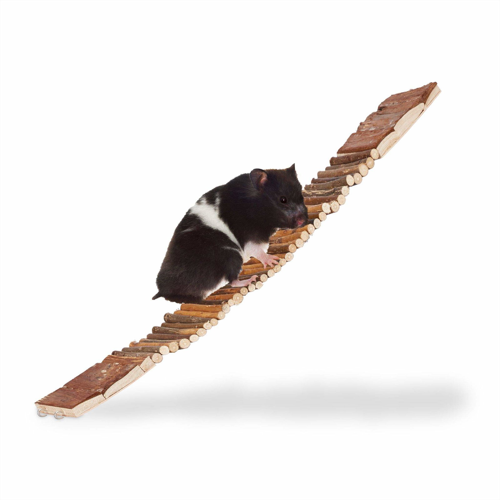 Hamsterbur av tre, 100 cm gnagerhus, smådyrstall, lekehus med hengebro, stiger, åpningstak, hytte, mørkegrå