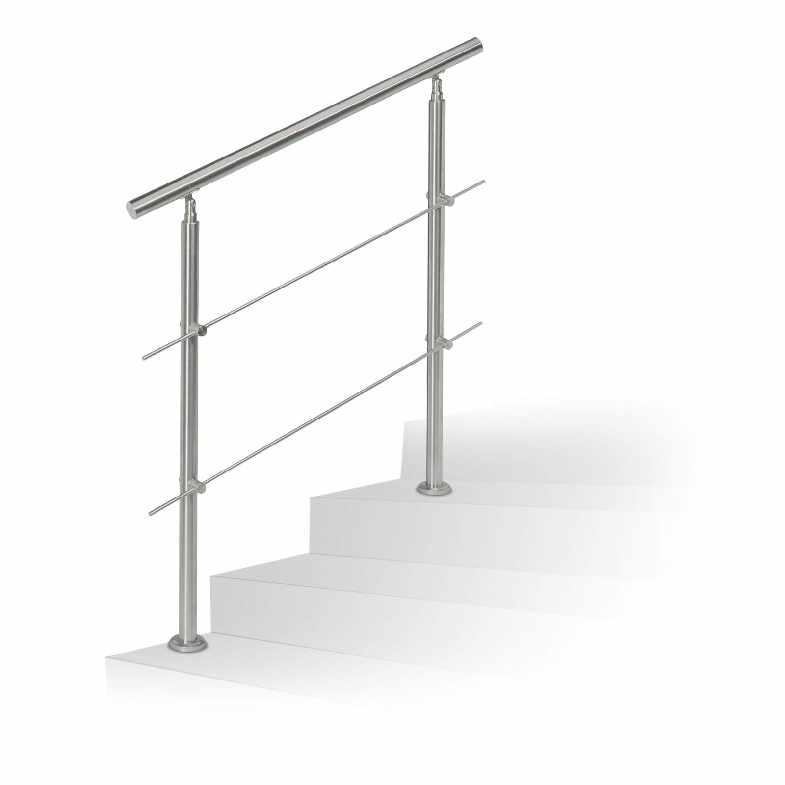 Rustfritt stål trapperekkverk 1,0 m / 2 stolper / 2 tverrstenger