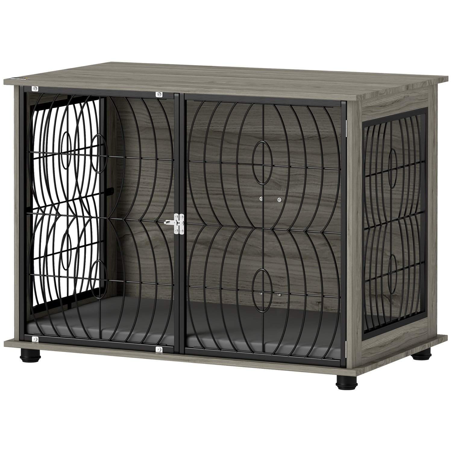 Hundebur til hjemmet, hundegård, innendørs dyrebur med pute, hundehus med vindu, hundebur for store hunder, grå, 100 x 60 x 73,5