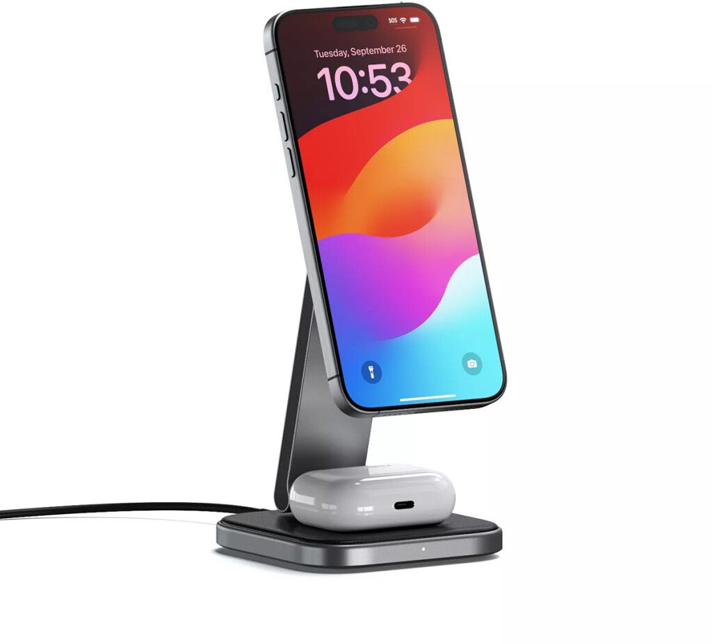 Satechi 2-i-1 sammenleggbart Qi2 trådløst ladestativ