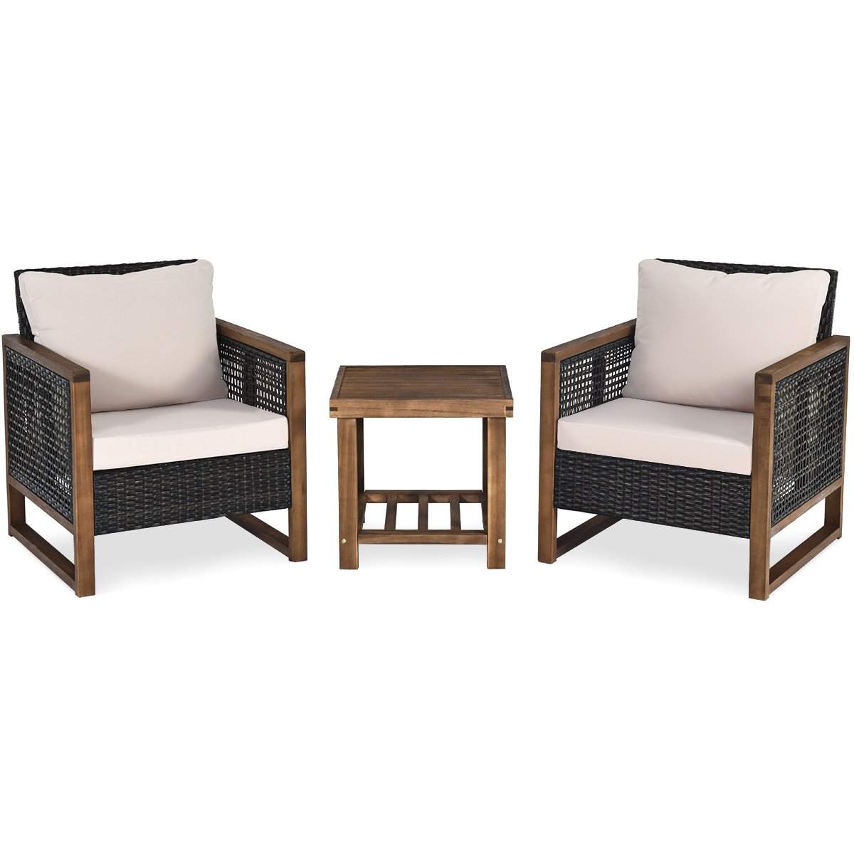 Sett med 3 hagemøbler i rotting polyrattan salongsett med vaskbare sitteputer uteservering
