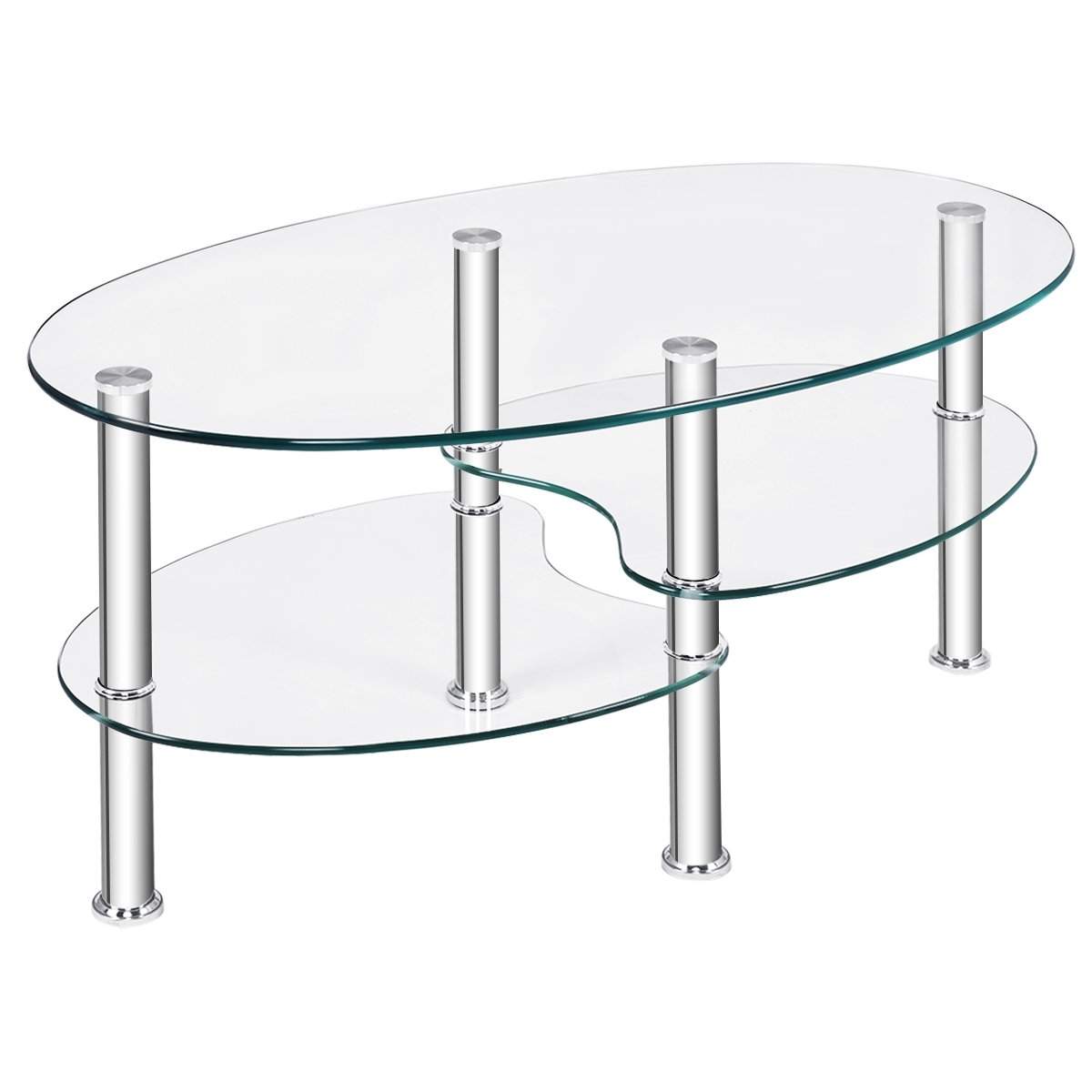 3-lags glassbord med moderne oval design Tre-lags gjennomsiktig hylle