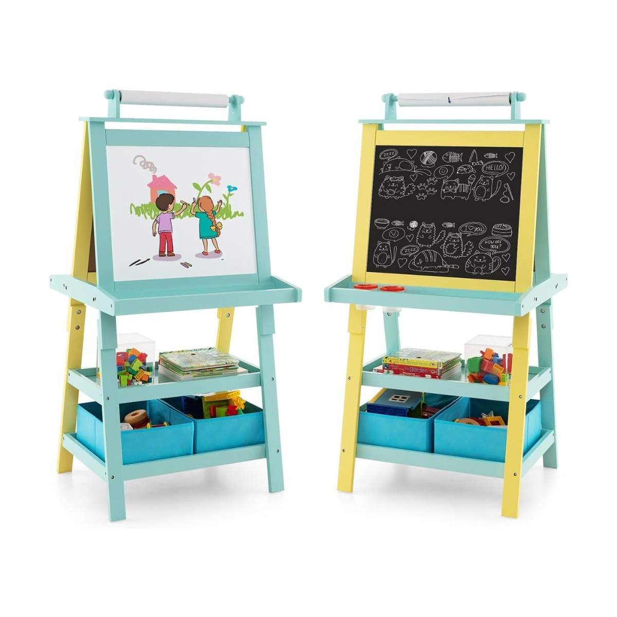 3 i 1 barnestaffel dobbeltsidig tavle og tavle og tegnepapir gul + blå