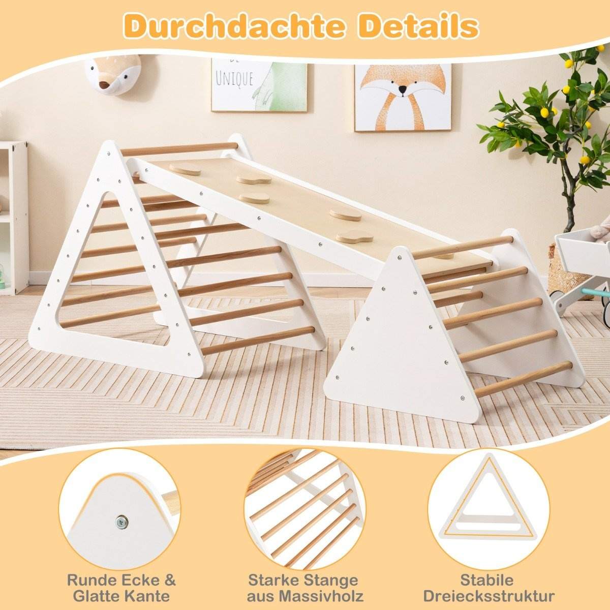 3 i 1 klatrelekesett for småbarn Klatretrekant og stige og skli Klatrestativ Naturlig