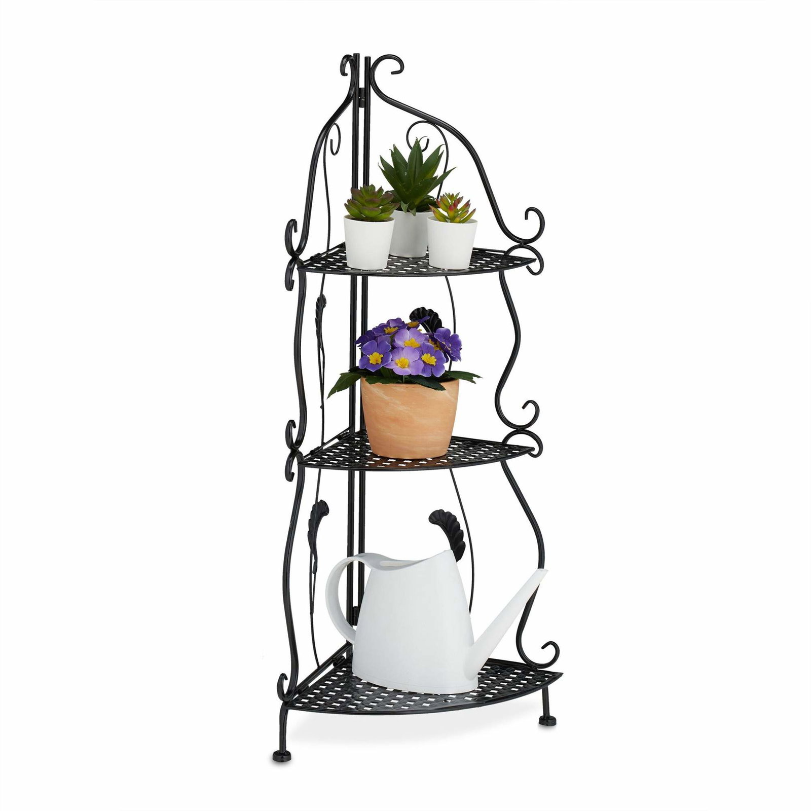 Hjørnehylle i metall med 3 hyller
