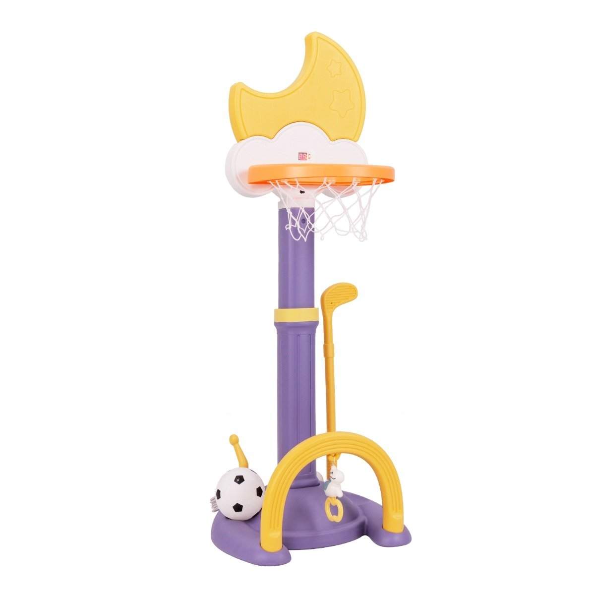 4 i 1 basketballkurvesett for barn med basketball & Fotball & Ringkasting basketballstativ gul