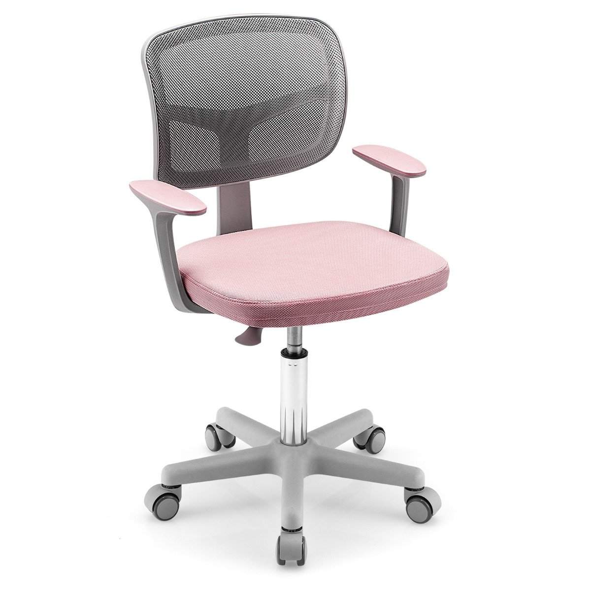 Barnedatastol med justerbar høyde og selvlåsende hjul for 3-10 år Barn Rosa