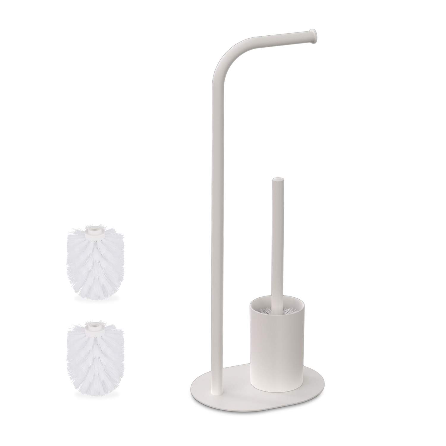Hvitt toalettsett i metall – frittstående holder og børste