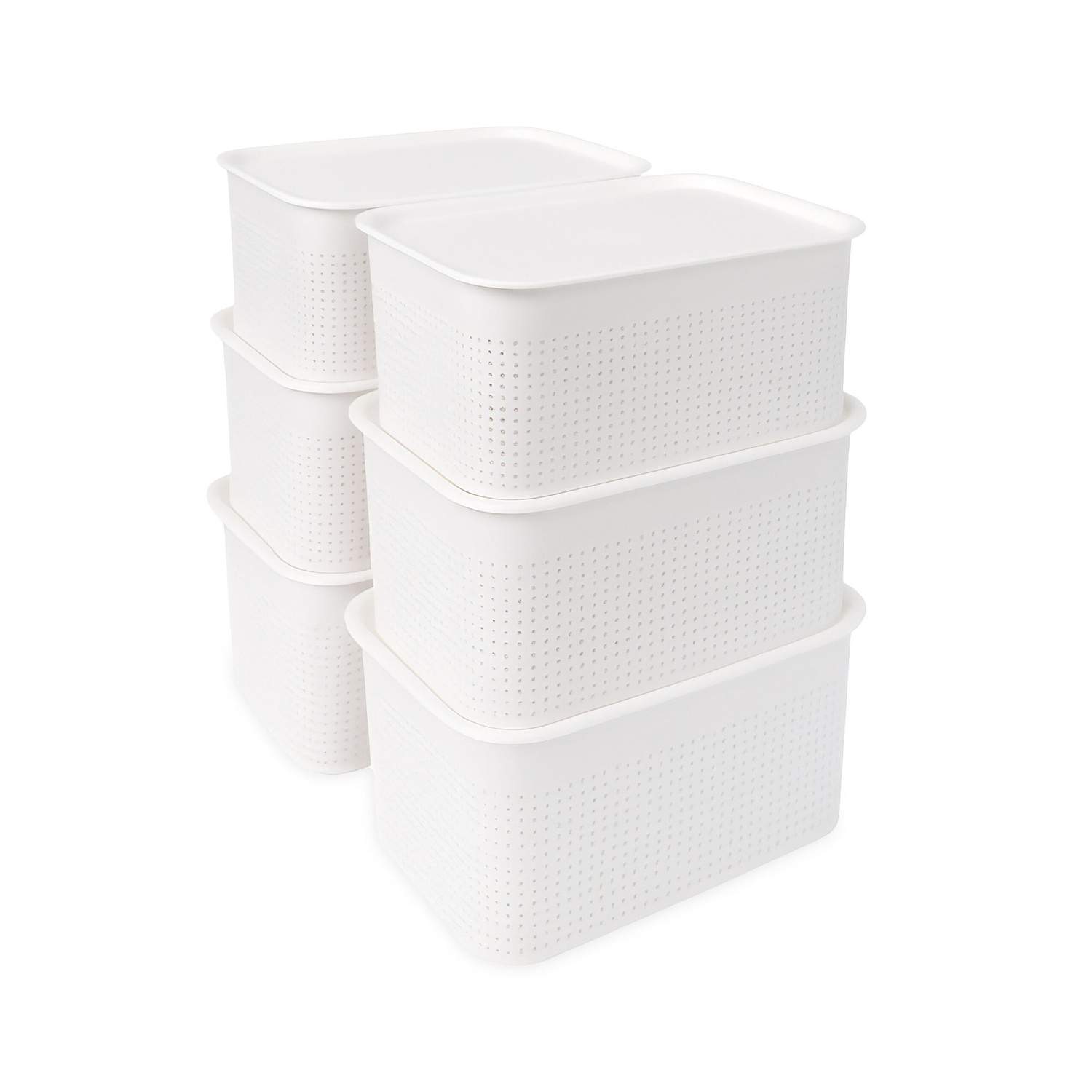 Stablebare oppbevaringsbokser med lokk, sett med 6 – ventilerte